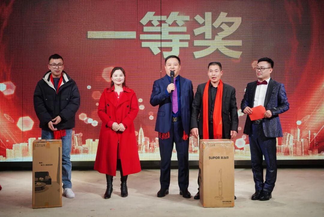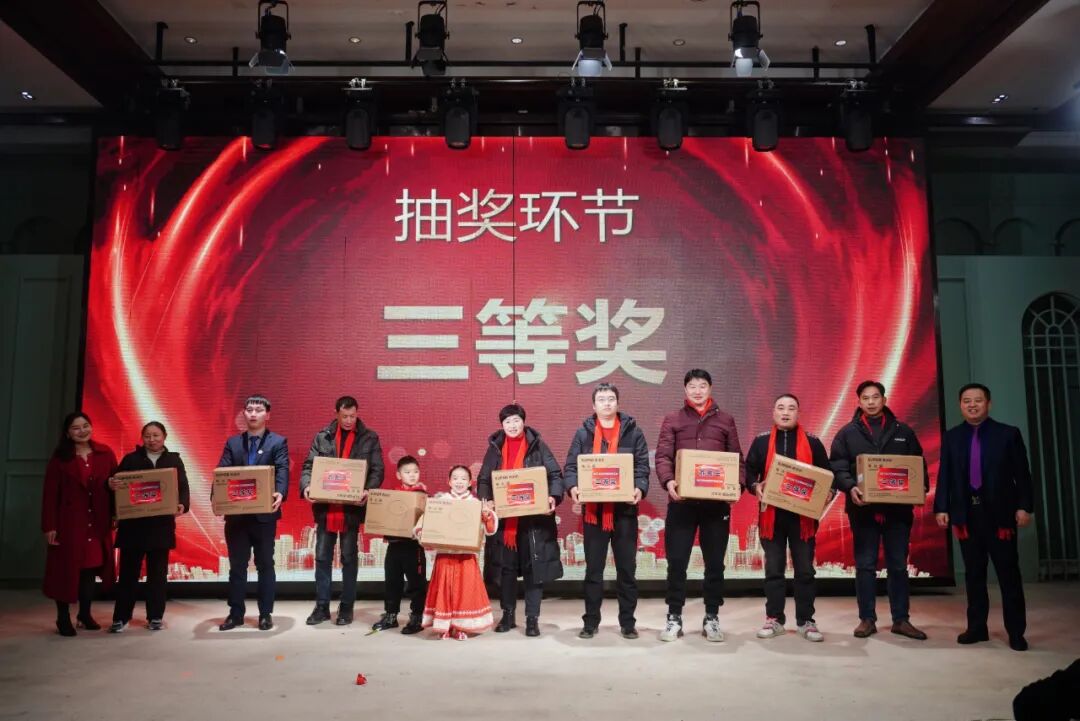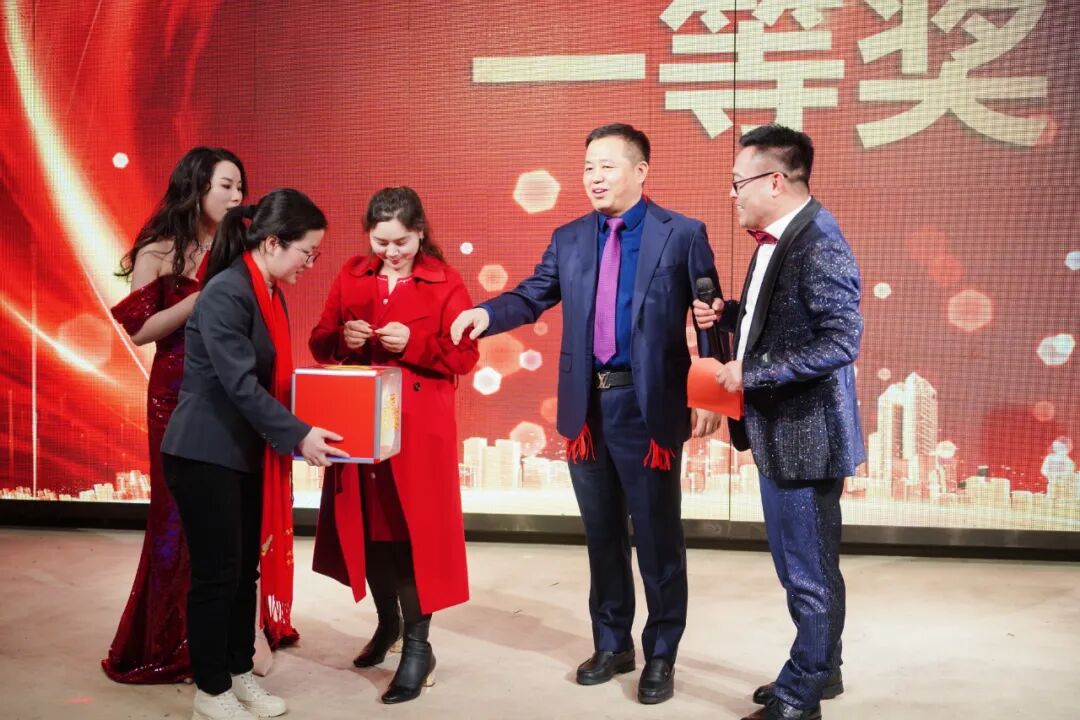 迎春晚会在一支翩若惊鸿,婉若游龙的优美舞蹈《桃花笑》下拉开了帷幕!本场晚会内容精彩纷呈、节目丰富,从董事长到员工、从年长者到小孩童,各显神通、各展才艺,有经久耐听的老歌、有时尚流行的舞曲、有传统文化的黄梅戏、有活力四射的舞蹈、有激情澎湃的诗朗诵;本次晚会抽奖频率高、奖品数量多,中奖率接近60%,诞生了很多幸运儿,这份好运将伴随龙年之路,一帆风顺!