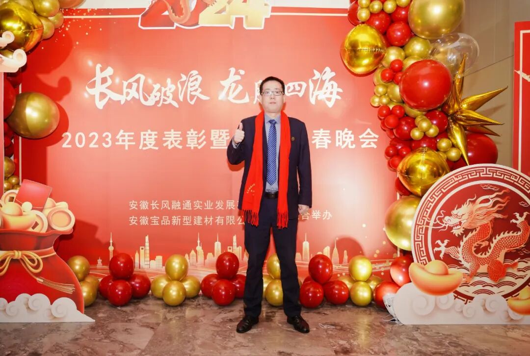 岁月如歌,华光如梦,长风破浪,龙腾四海!2月3日下午,长风融通&安徽宝品2023年度表彰大会暨2024年迎春晚会在合肥同庆楼召开,安徽长风融通实业发展有限公司与安徽宝品新型建材有限公司(以下简称“长风融通”和“安徽宝品”)董事长刘绍东先生携两家企业全体员工170余人参会。