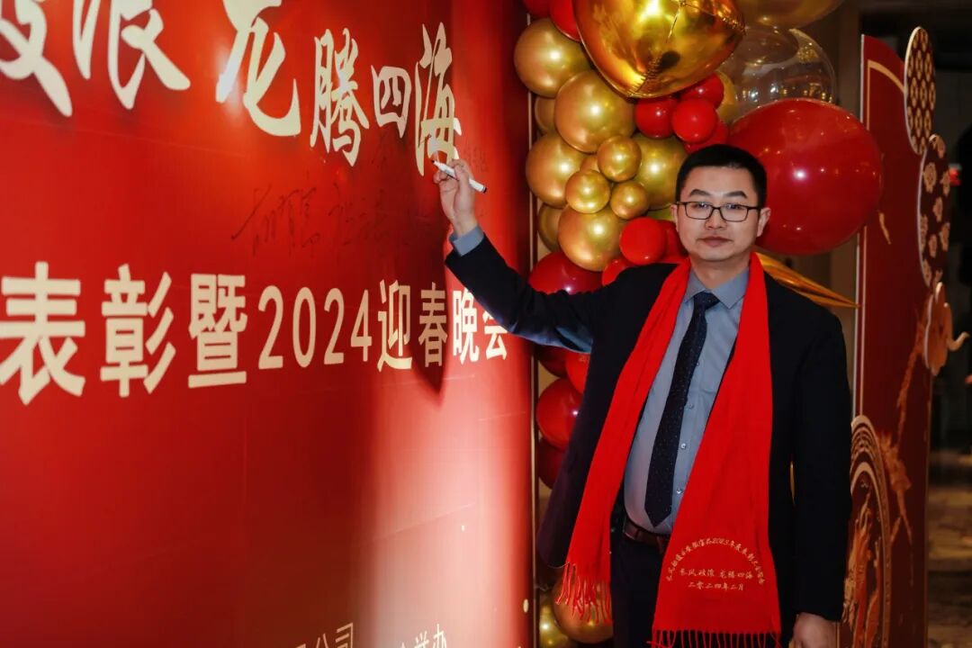 最后,在中华民族的传统节日——春节即将来临之际,董事长向在场全体同仁及家人们送上节日问候,并表达良好祝愿,祝愿大家在新的一年里:身体健康、工作顺利!福暖四季、顺遂安康!同时提前向大家拜个早年,祝大家:龙行龘龘,前程朤朤,生活䲜䲜!